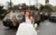 Η νύφη πόζαρε για τον φωτογραφικό φακό μπροστά από οχήματα του στρατού προκαλώντας χαμόγελα στους παρευρισκόμενους.
