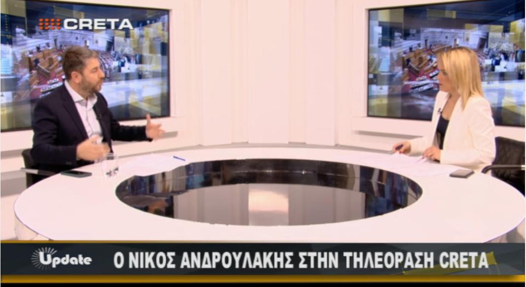Συνέντευξη εφ’ όλης της ύλης για την οικονομία, τα θέματα της καθημερινότητας, τον Βόρειο Οδικό Άξονα Κρήτης, τα Τέμπη αλλά και τις δημοσκοπήσεις, παραχώρησε στην Τηλεόραση CRETA και την εκπομπή Update με τη Σώτια Πεντεδήμου ο Πρόεδρος του ΠΑΣΟΚ Νίκος Ανδρουλάκης.