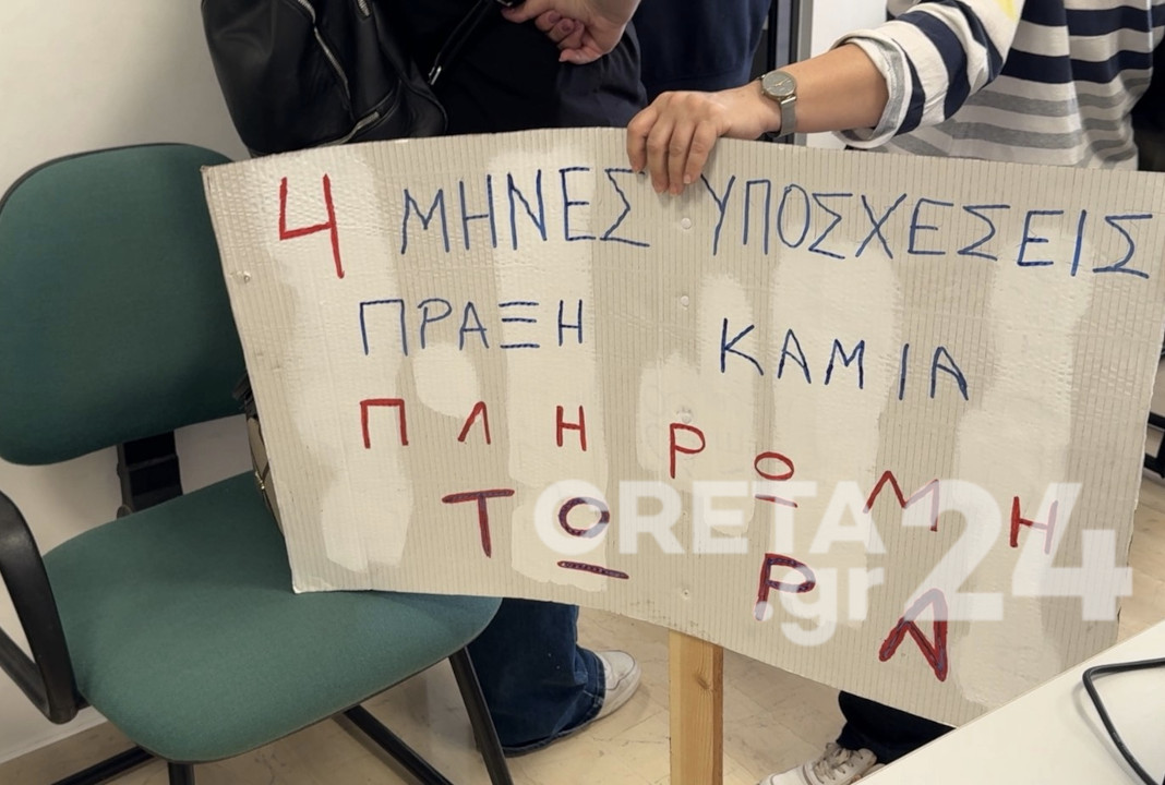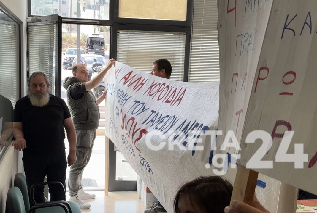 «Πάνω από 40 άτομα σήμερα είναι απλήρωτοι από το Ταμείο Ανεργίας που η Περιφέρεια Κρήτης έστειλε αυτούς τους ανθρώπους στην ανεργία. Το επιτελικό κράτος κεντρικό και τοπικό δεν μπορεί να επιλύσει ένα πρόβλημα που θα μπορούσε με μια υπογραφή να έχει λυθεί. Την επόμενη φορά αυτό που διαμηνύουμε στη ΔΥΠΑ είναι ότι δεν θα είμαστε ευγενικοί, γιατί η κοροϊδία έχει φτάσει στο απροχώρητο».
