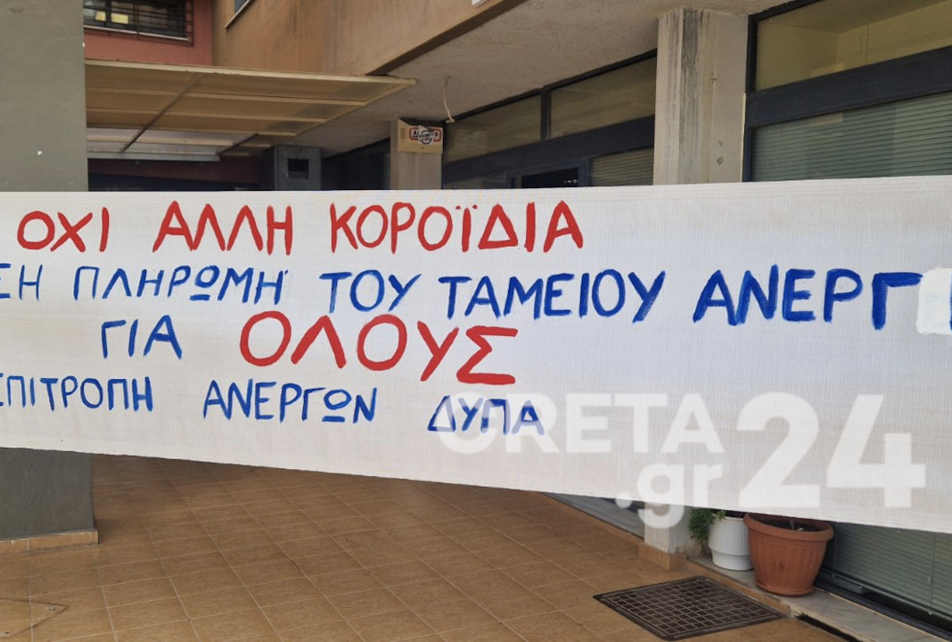 Πρώην εργαζόμενοι πραγματοποίησαν διαμαρτυρία, νωρίτερα το πρωί της Τετάρτης 7 Μαΐου έξω από τις εγκαταστάσεις της ΔΥΠΑ Ηρακλείου στη Λεωφόρο Κνωσού.