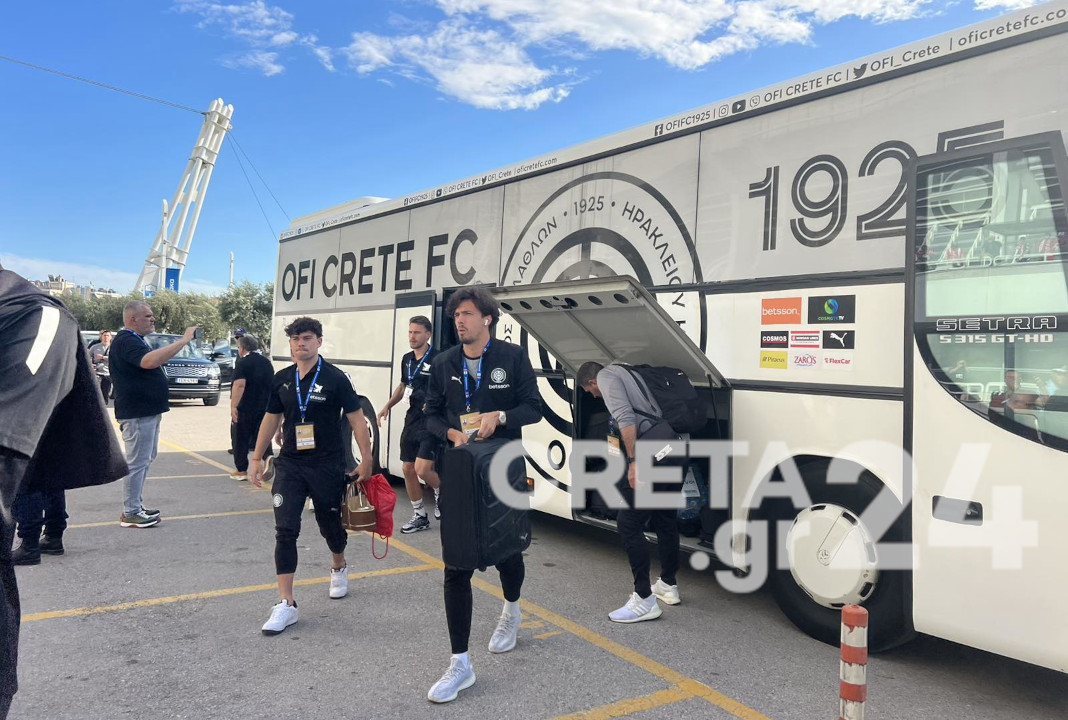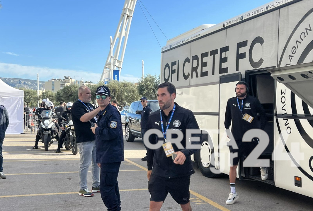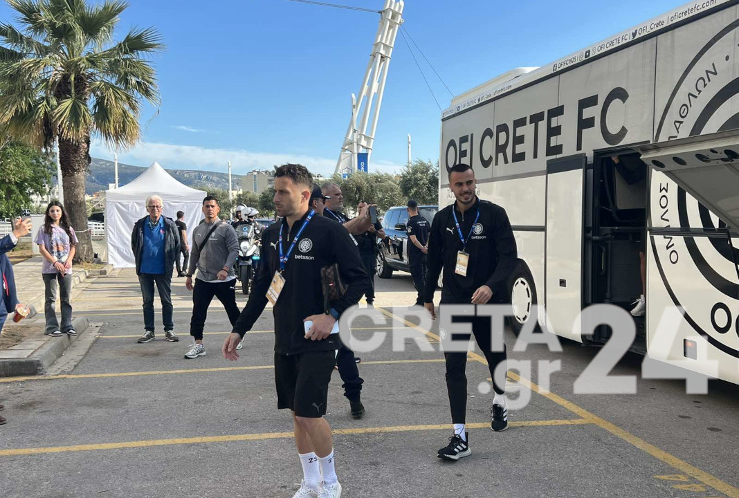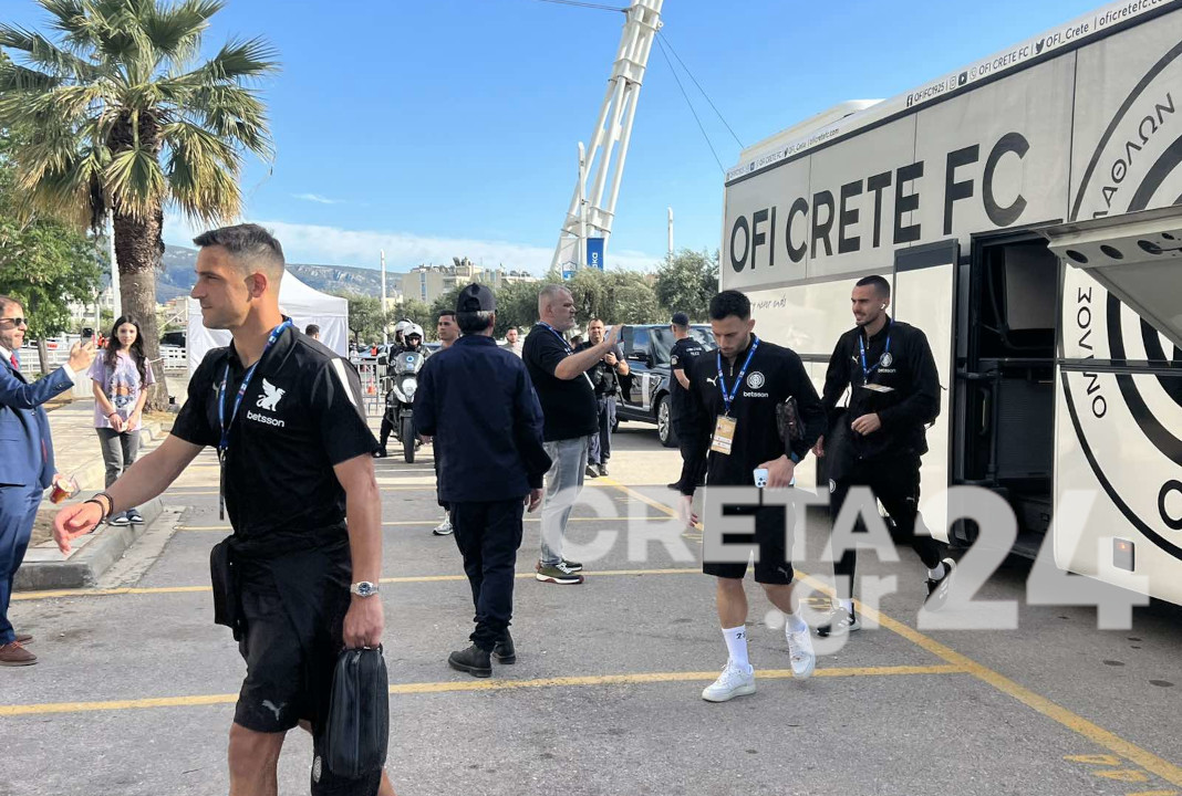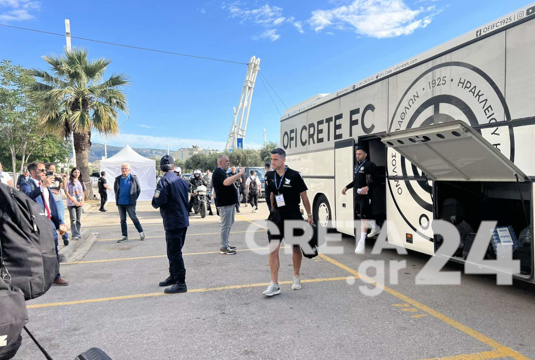 Λίγο μετά τις 6 στο Ολυμπιακό Στάδιο έφτασε και η αποστολή των Κρητικών.
