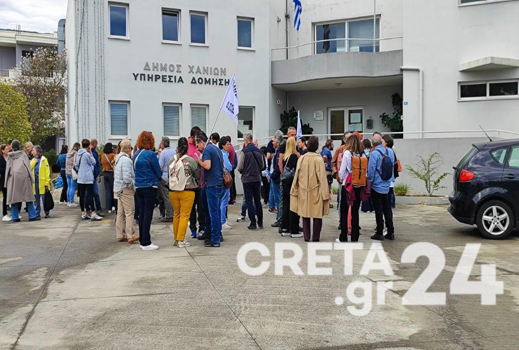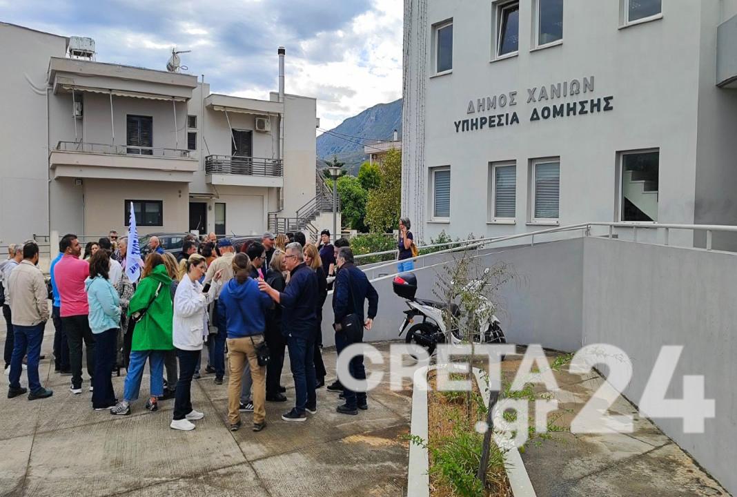 Οι κινητοποιήσεις πραγματοποιούνται έξω από την Πολεοδομία Χανίων αλλά και την Εισαγγελία.
