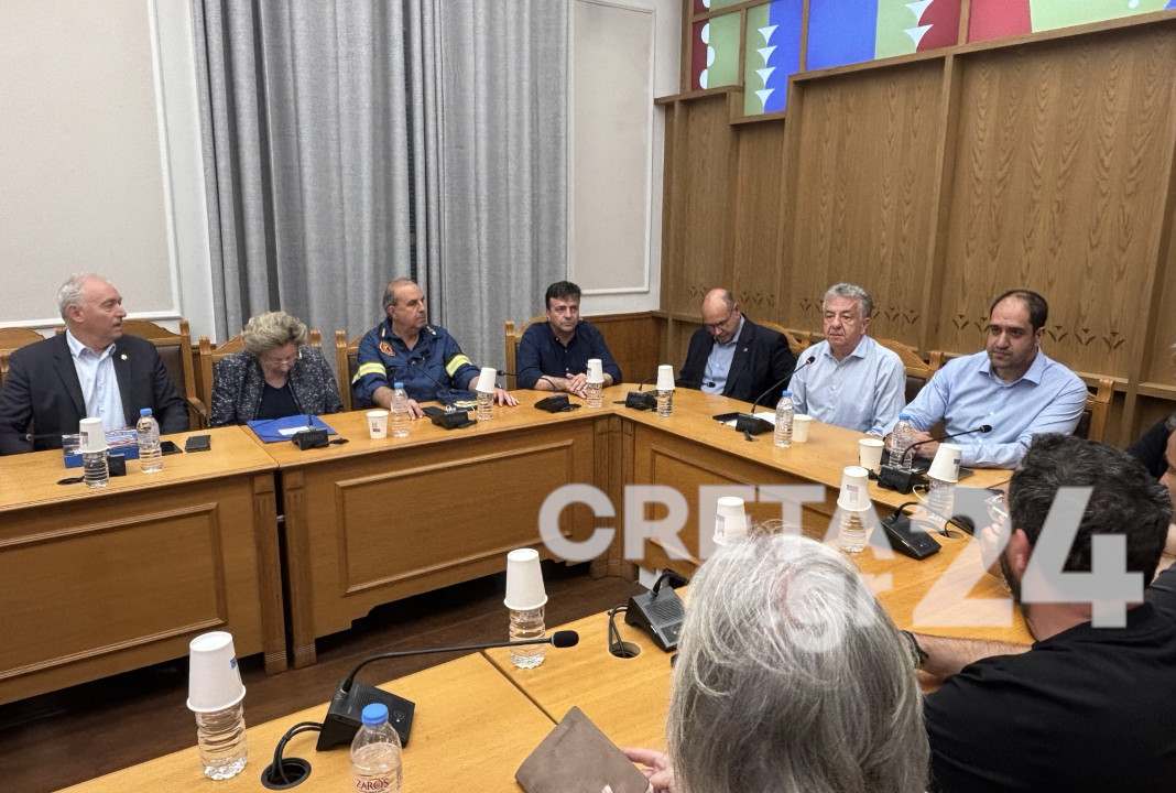 Ακολούθως, συναντήθηκαν με τον Περιφερειάρχη Κρήτης Σταύρο Αρναουτάκη και πραγματοποιήθηκε σύσκεψη, με την συμμετοχή των εμπλεκόμενων φορέων, με τον κ. Κεφαλογιάννη να τονίζει πως το φαινόμενο θα συνεχίσει να βρίσκεται υπό παρακολούθηση, εμφανίστηκε όμως καθησυχαστικός, σημειώνοντας πως δεν υπάρχει λόγος ανησυχίας.