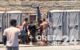 Με τη θερμοκρασία στα ύψη, εκτεθειμένοι στον ήλιο οι μετανάστες προσπαθούν να δροσιστούν με το λάστιχο που βρίσκεται στο λιμάνι.