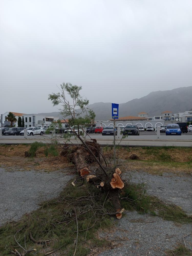 Πτώση δέντρου σημειώθηκε και στην εθνική οδό Χανίων Ρεθύμνου στην περιοχή του Καβρού.