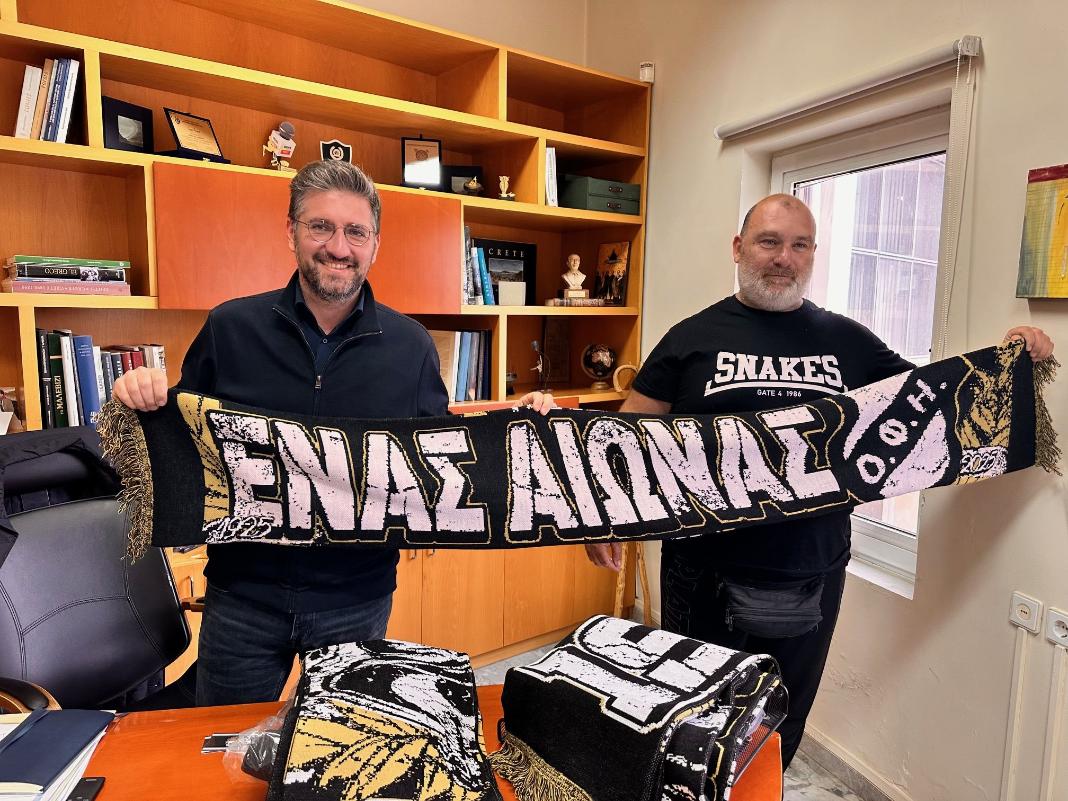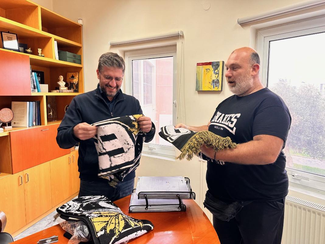 Ο Αντιπρόεδρος του Συνδέσμου SNAKES 4 ευχαρίστησε θερμά τον Δήμαρχο για τη στήριξη και την ουσιαστική διευκόλυνση που προσέφερε στους φιλάθλους της ομάδας και του προσέφερε αναμνηστικά του Συνδέσμου ως ένδειξη εκτίμησης και συνεργασίας.
