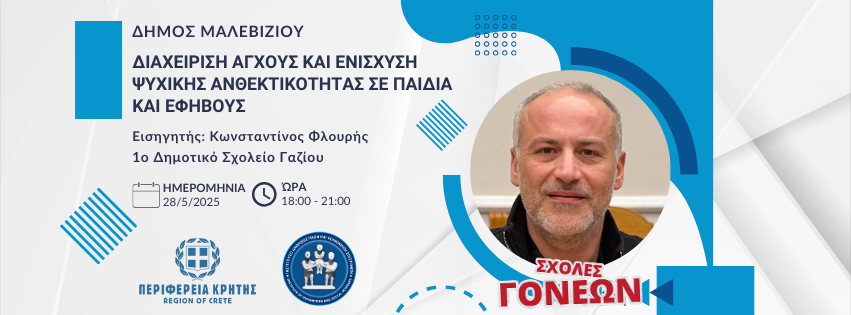 Οι Σχολές Γονέων της Περιφέρειας Κρήτης, μια πρωτοβουλία που υλοποιείται σε συνεργασία με το Ινστιτούτο Ανθρωπιστικών και Κοινωνικών Επιστημών (ΙΑΚΕ) και με την υποστήριξη των Δήμων Μαλεβιζίου και Μινώα Πεδιάδος, συνεχίζουν δυναμικά το έργο τους με δύο επίκαιρες συναντήσεις την Τετάρτη 28 Μαΐου 2025.