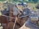 Το ελικόπτερο σηκώνει ένα σύννεφο σκόνης και συντριμμιών.