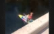 Στα καρέ φαίνεται ο άνδρας να κάνει το άλμα στο κενό από τη γέφυρα, να ανοίγει τα πόδια του και να πέφτει πάνω σε δύο ανυποψίαστους επιβάτες καγιάκ.