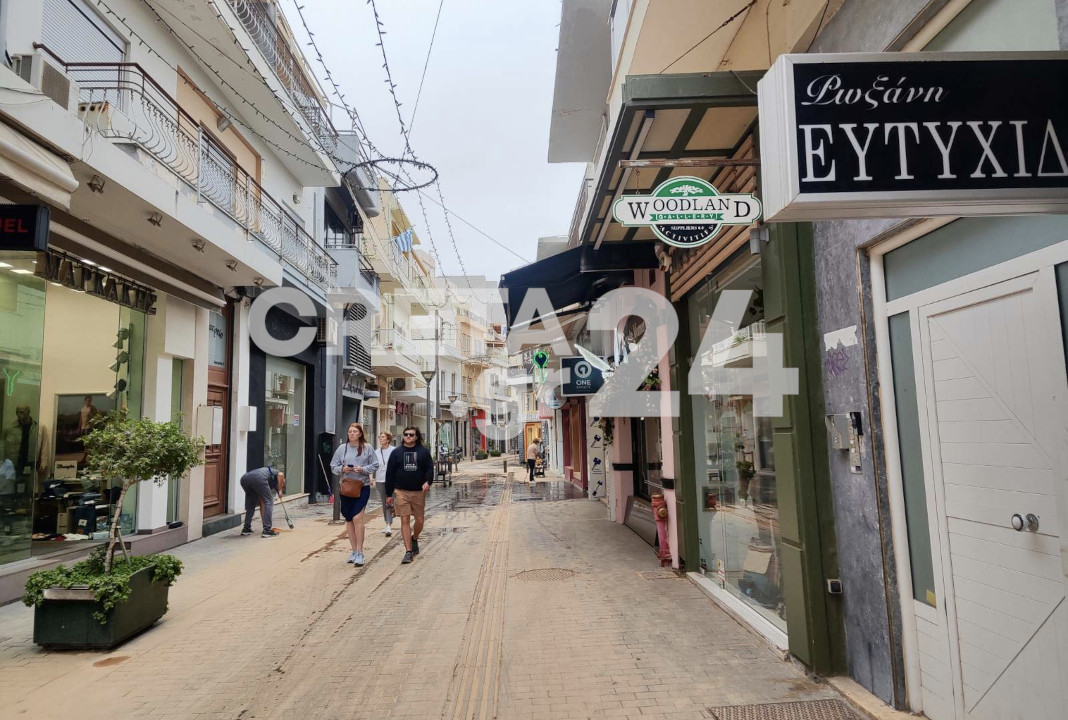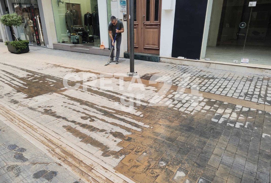 Καταστηματάρχες έπιασαν από νωρίς τα λάστιχα, και προσπαθούν να καθαρίσουν το πλακόστρωτο έξω από τα μαγαζιά τους.