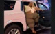 «Μπορώ να χωρέσω στα πίσω καθίσματα», λέει η Μπλάντινγκ σε βίντεο από το περιστατικό που ανέβασε στα κοινωνικά δίκτυα, ενώ ο οδηγός, από το μισάνοιχτο παράθυρο της λέει ότι δεν χωράει και ότι από το βάρος της μπορεί να σκάσουν τα λάστιχα της Mercedes-Benz του.