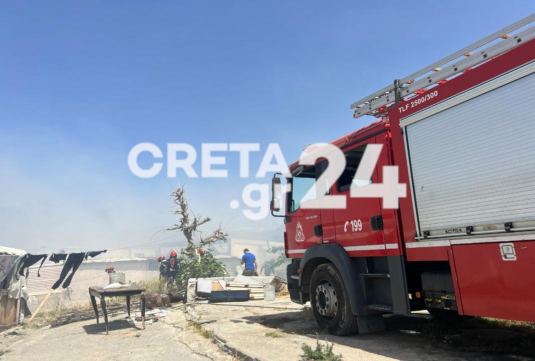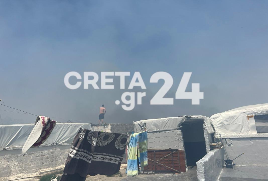 Συναγερμός σήμανε νωρίτερα το μεσημέρι του Σαββάτου 24 Μαΐου στην Πυροσβεστική Υπηρεσία Ηρακλείου, για φωτιά που ξέσπασε στον καταυλισμό τον Ρομά, πίσω από το Κλειστό Γυμναστήριο Νέας Αλικαρνασσού.