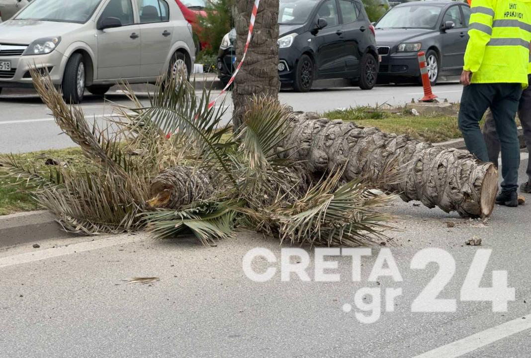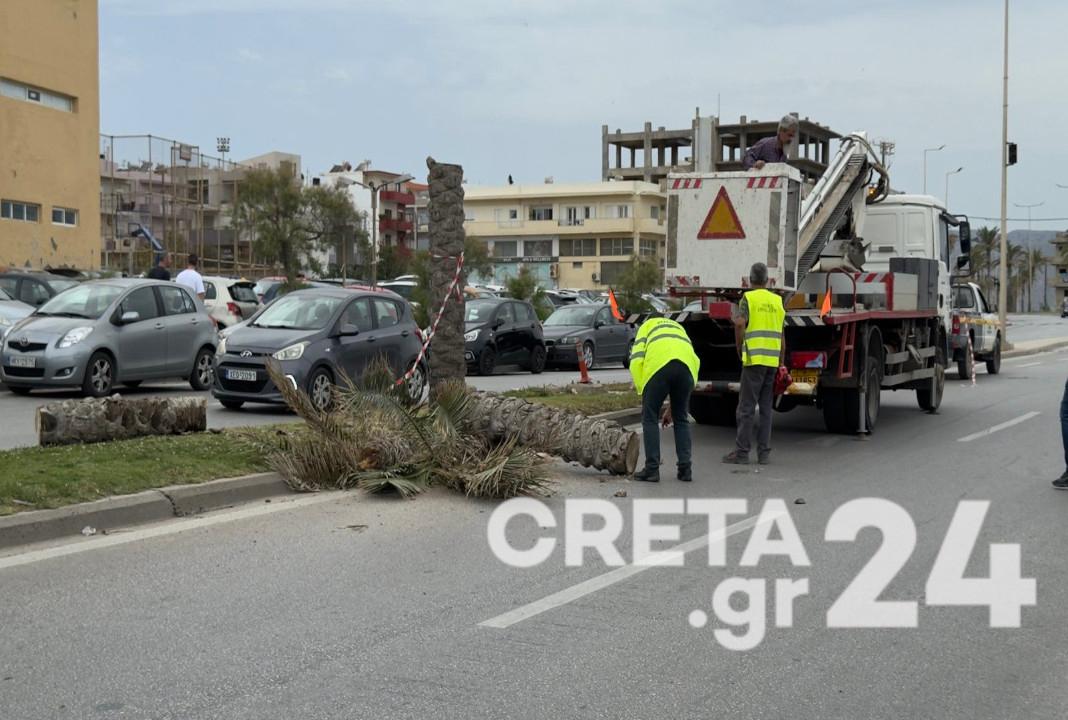 Οι ισχυροί νότιοι άνεμοι έχουν σημάνει συναγερμό και κρίθηκε αναγκαία, η απομάκρυνση ενός επικίνδυνου φοίνικα στην παραλιακή λεωφόρο Ηρακλείου, καθώς παρουσίαζε ρωγμές, σύμφωνα με τα όσα δήλωσε στο Creta24, ο αρμόδιος αντιδήμαρχος καθαριότητας και πρασίνου Νίκος Γιαλιτάκης.