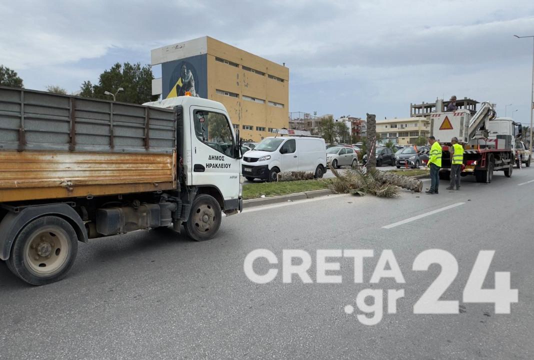 Ηράκλειο: Κινητοποίηση για επικίνδυνο φοίνικα στην παραλιακή λεωφόρο – Εικόνες