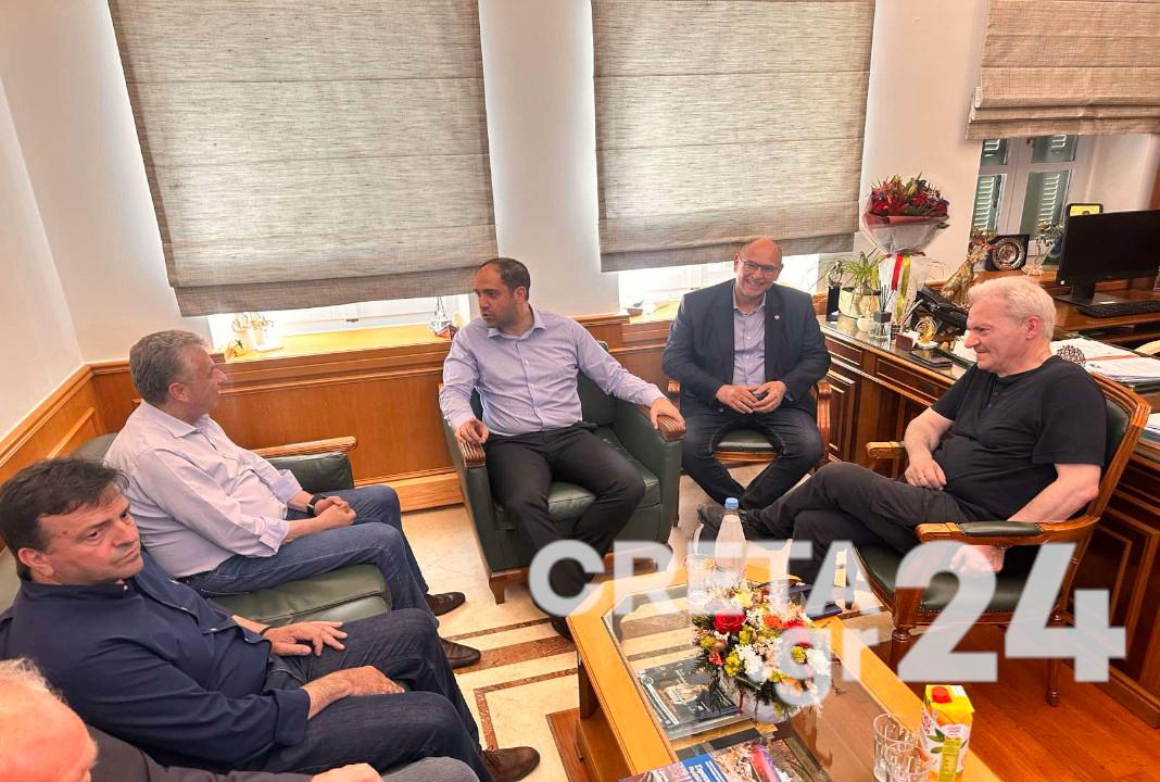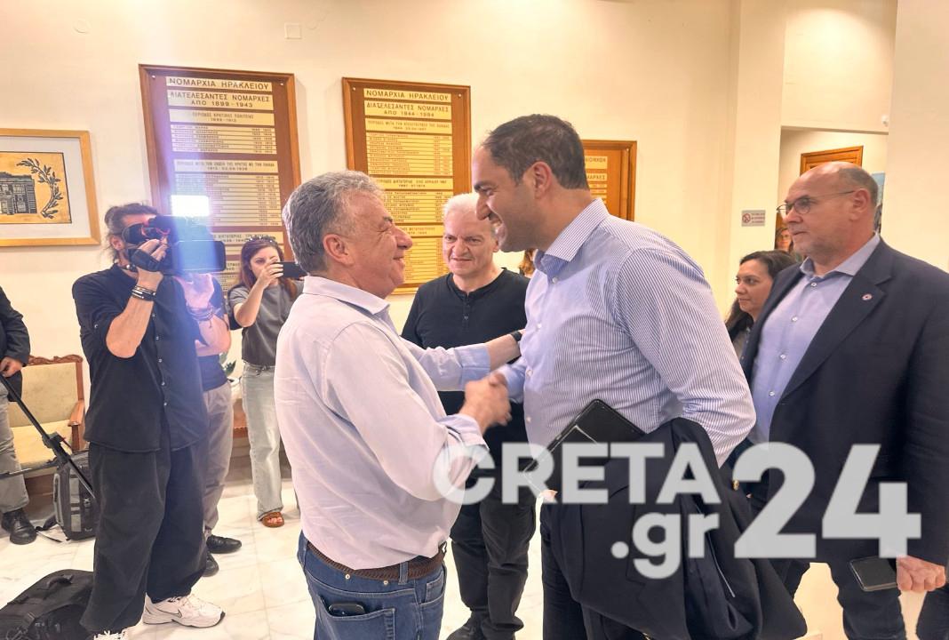 Ακολούθως, έφτασε στην Περιφέρεια Κρήτης, όπου και αυτή την ώρα πραγματοποιείται σύσκεψη μαζί με τον Περιφερειάρχη Σταύρο Αρναουτάκη.