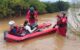 Διασώστες μετέφεραν με βάρκα τους πολίτες για να τους παραδώσουν σε ασθενοφόρο.