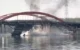 Βίντεο που κυκλοφόρησαν στα μέσα κοινωνικής δικτύωσης δείχνουν πυκνούς γκρίζους καπνούς να βγαίνουν από τα πλαϊνά της γέφυρας.