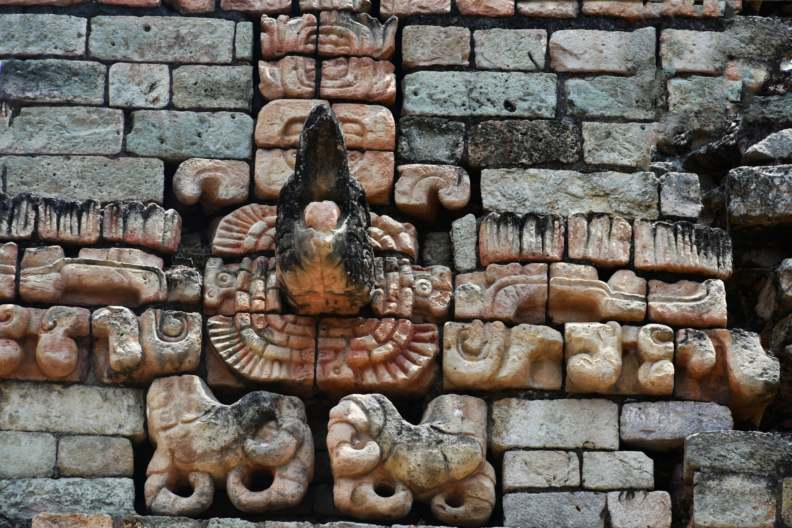 Ναοί και Δομές που περικλείουν βασιλικούς τάφους στην Ακρόπολη είναι διακοσμημένα με αξιοπερίεργα γλυπτά, όπως το «κεφάλι του Γέρου», οι μάσκες του θεού του βουνού Βιτς και οι Ιαγουάροι που χορεύουν γύρω από τον K’inich Ahau, τον Θεό Ήλιο.