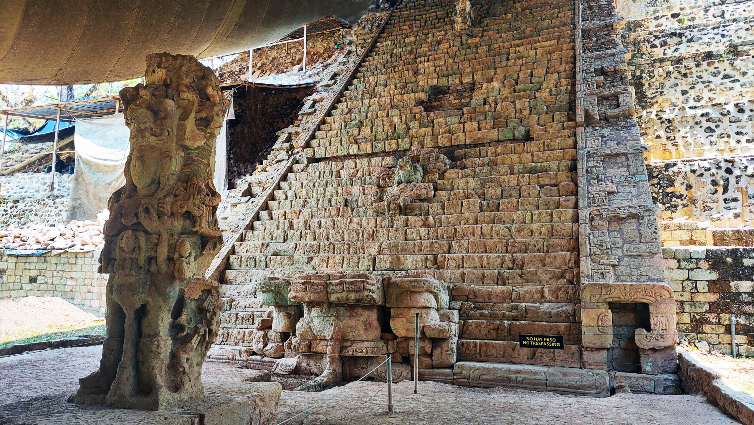 Εδώ, στον αρχαιολογικό χώρο του Κοπάν οι πέτρες μιλούν. Σε καλούν να σκύψεις πάνω τους, να αφουγκραστείς και να κατανοήσεις τον μυστηριώδη και αινιγματικό κόσμο τον Μάγια. Κι είναι αυτοί οι περίτεχνα σμιλεμένοι μονόλιθοι, οι στήλες και οι βωμοί με τα θεϊκά και βασιλικά πρόσωπα, τα ιερογλυφικά σύμβολα, οι ναοί και οι βαθμιδωτές πυραμίδες που μας καθιστούν κοινωνούς της τέχνης τους. Μας ανοίγουν ένα παράθυρο στις πεποιθήσεις, την μυθολογία και τις τελετουργίες τους.