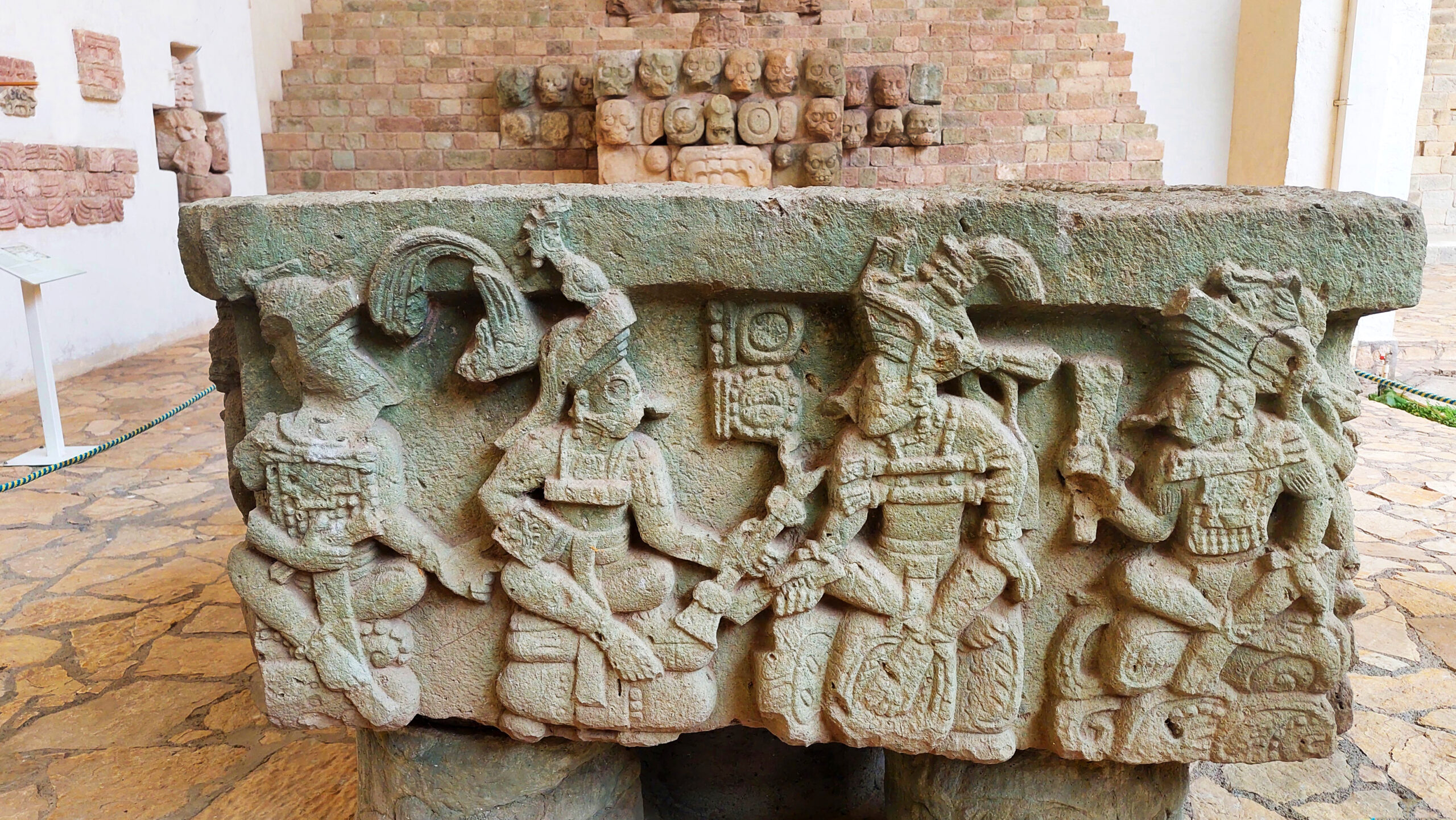 Τα ανάγλυφα πορτραίτα των 16 ηγεμόνων του Κοπάν απεικονίζονται στις τέσσερις πλευρές ενός τεράστιου μονόλιθου, του Βωμού Q. Το Altar Q χρονολογείται από το 776 μ. Χ και κοσμούσε την ανατολική πλατεία του κεντρικού συγκροτήματος. Το πρωτότυπο του εντυπωσιακού σε όγκο μνημείου έχει μεταφερθεί και εκτίθεται στο μουσείο.
