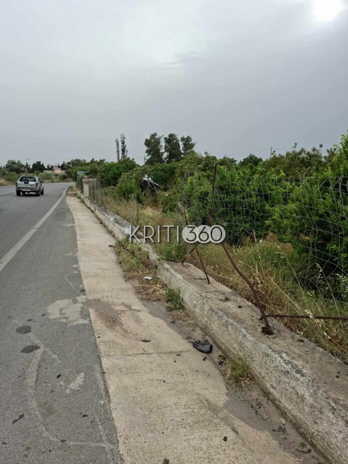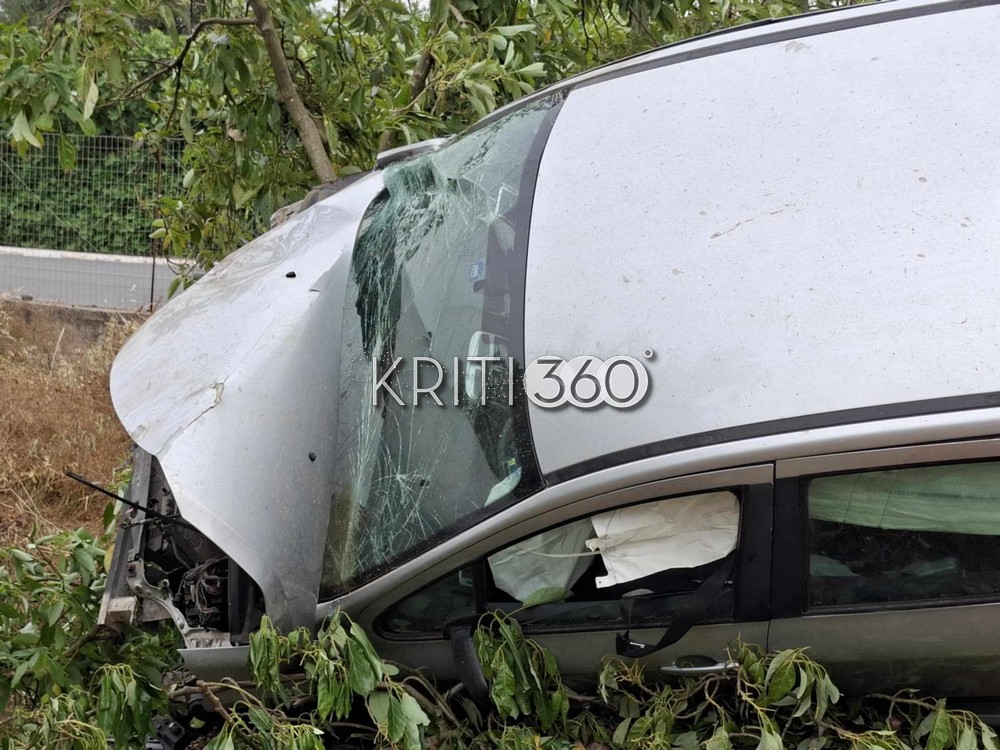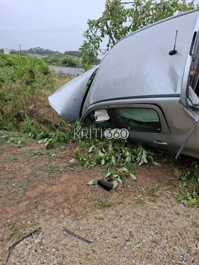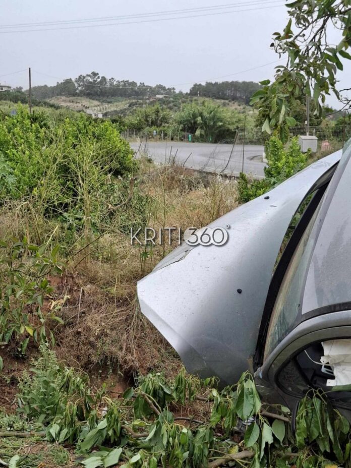 Αυτοκίνητο που κινούνταν με κατεύθυνση τα Χανιά εξετράπη από το οδόστρωμα, έσπασε την περίφραξη παρακείμενου χωραφιού και σταμάτησε μέσα στη βλάστηση, έχοντας σπάσει και κάποια δέντρα.