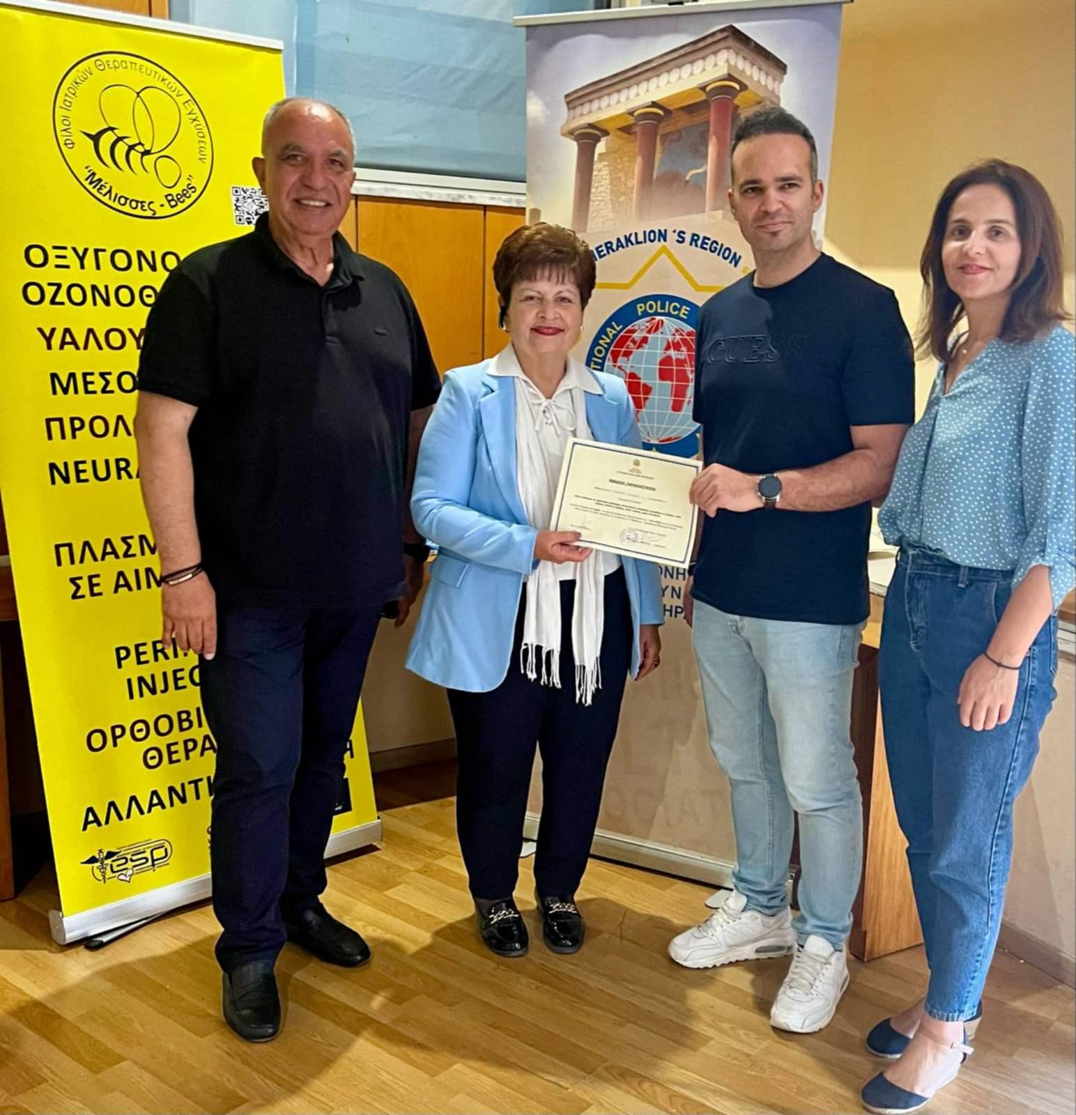 Η δράση υλοποιείται με τη συνεργασία της ομάδας εθελοντών «Οι φίλοι Ιατρικών Θεραπευτικών Εγχύσεων Μέλισσες – Bees», υπό την επιστημονική εποπτεία του Φυσίατρου Λάζαρου Βακιρτζιάν. Το σεμινάριο πραγματοποιήθηκε στην αίθουσα πολλαπλών χρήσεων του Αστυνομικού Μεγάρου Ηρακλείου και οι συμμετέχοντες επιμορφώθηκαν σε κρίσιμες δεξιότητες πρώτων βοηθειών, όπως: Αντιμετώπιση θύματος καρδιακής ανακοπής (ΚΑΡΠΑ – χρήση Απινιδωτή), Αντιμετώπιση αναίσθητου θύματος (θέση ανάνηψης), Αντιμετώπιση πνιγμονής από ξένο σώμα.