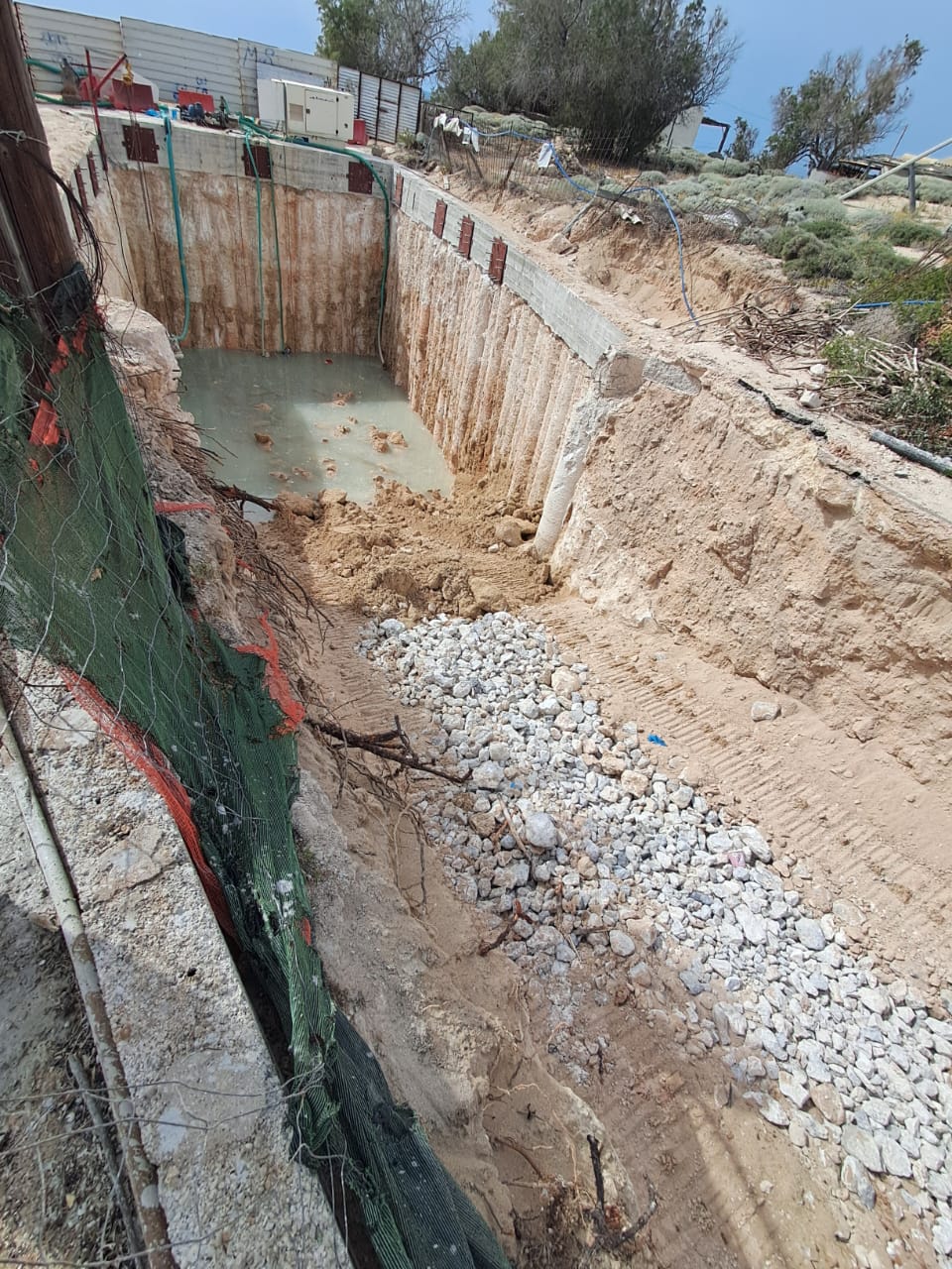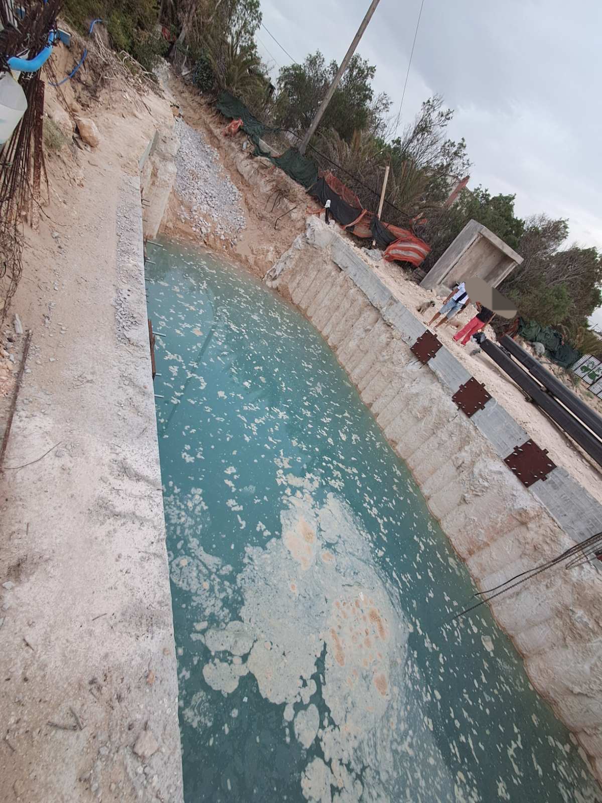 Τα απόβλητα αυτά είναι θαλασσινό νερό που εισρέει στην τεράστια εκσκαφή αναμεμειγμένο με διάφορα υλικά. Το θαλασσινό νερό παρέμεινε στάσιμο για τουλάχιστον δύο εβδομάδες, μιας και οι εργασίες είχαν σταματήσει στις 8 Μαΐου μετά από αντιδράσεις για καταστροφή αμμοθινών.