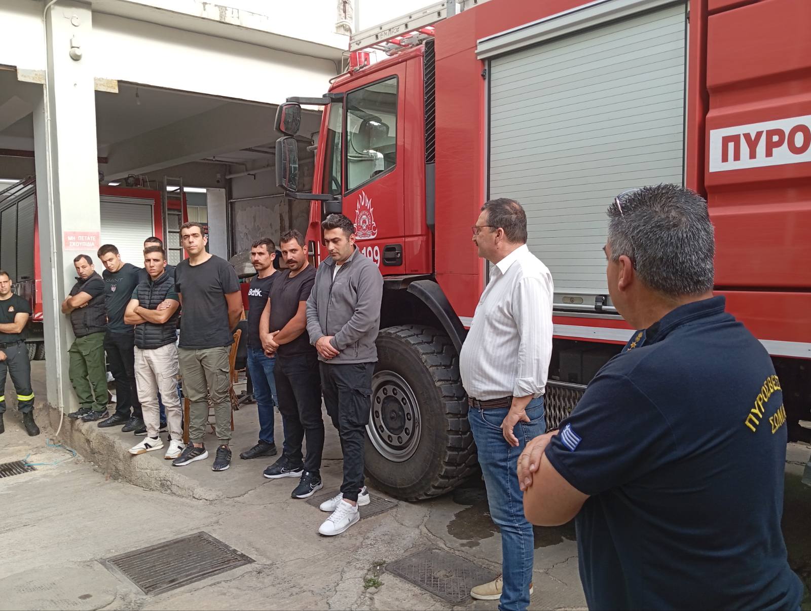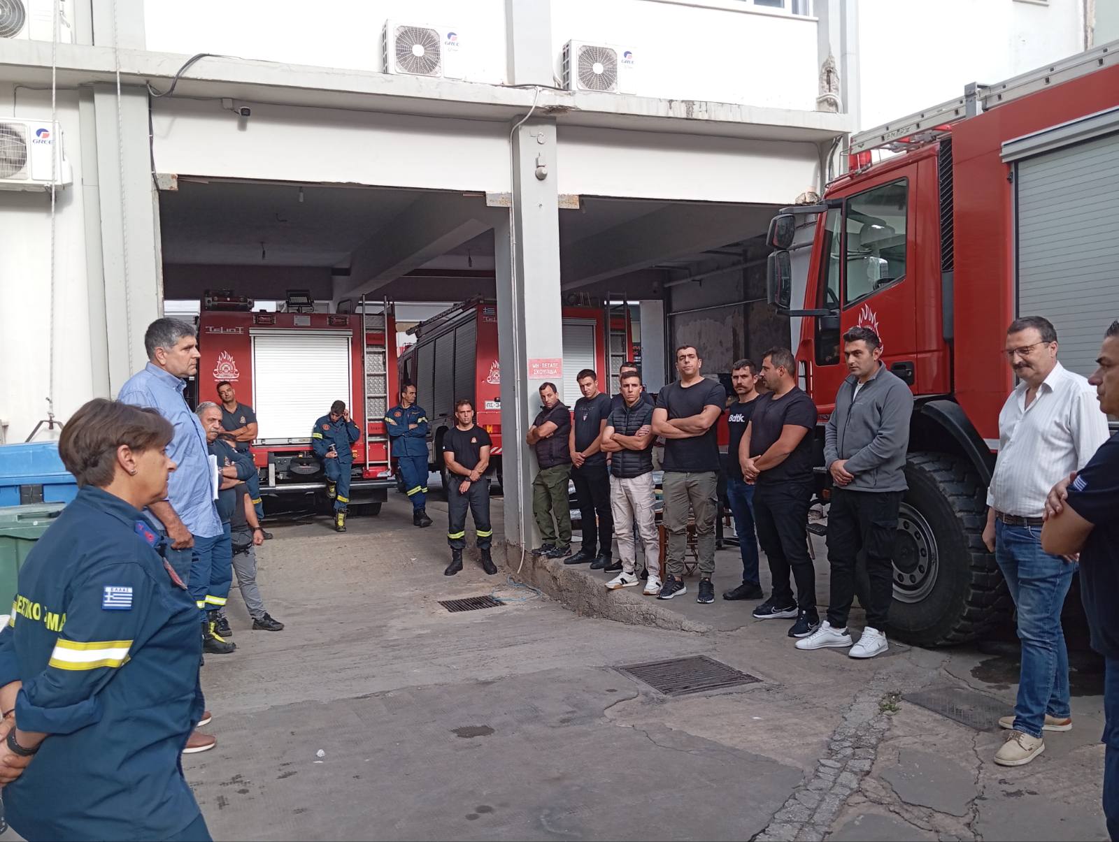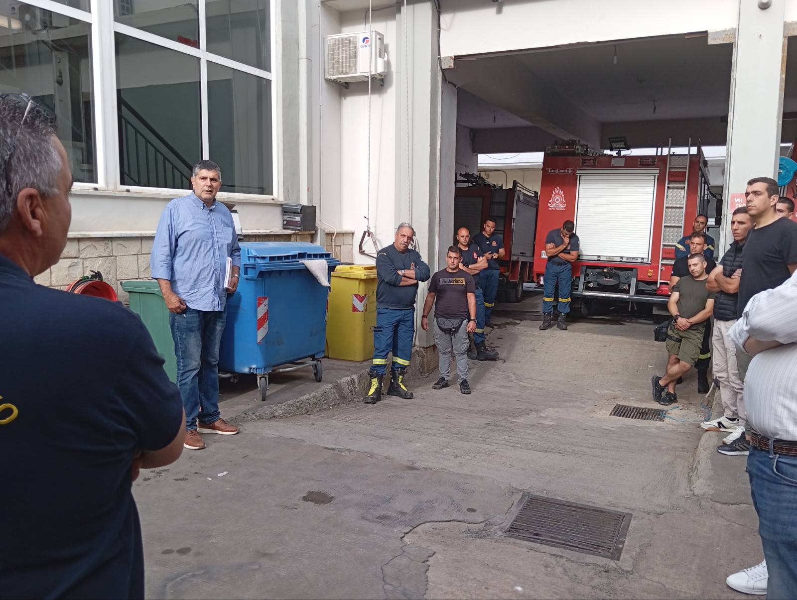 «Το κλιμάκιο συζήτησε με τον πρόεδρο του σωματείου εργαζομένων, κ. Κασαπάκη Γιώργο και τους εργαζόμενους στην Πυροσβεστική Υπηρεσία και συναντήθηκε με τον διοικητή των πυροσβεστικών υπηρεσιών Χανίων πύραρχο κ. Ρεγκά Αργύριο.