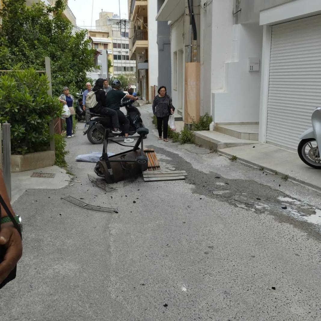 Στην οδό Βιάννου, κοντά στην Πλατεία Κορνάρου στο κέντρο του Ηρακλείου, «προσγειώθηκε» στο δρόμο από ένα μπαλκόνι μια ψησταριά, χωρίς ευτυχώς να τραυματιστεί κανείς.