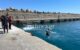 Οι υψηλές θερμοκρασίες και οι συνθήκες καύσωνα που επικρατούν αλλά και η μια και μοναδική παροχή νερού στο χώρο οδήγησε πολλούς από αυτούς να βουτήξουν στο λιμάνι για να δροσιστούν. Άνδρες του Λιμεναρχείου τους έβγαλαν έξω από τη θάλασσα.