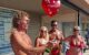 Ταυτόχρονα, κέρασαν σοκολατάκια και σαμπάνια άλλους λουόμενους που ήταν εκείνη την ώρα στην παραλία, για μπάνιο και ηλιοθεραπεία, ενώ στο τέλος ξεχύθηκαν στην αμμουδιά για να παίξουν ρακέτες.