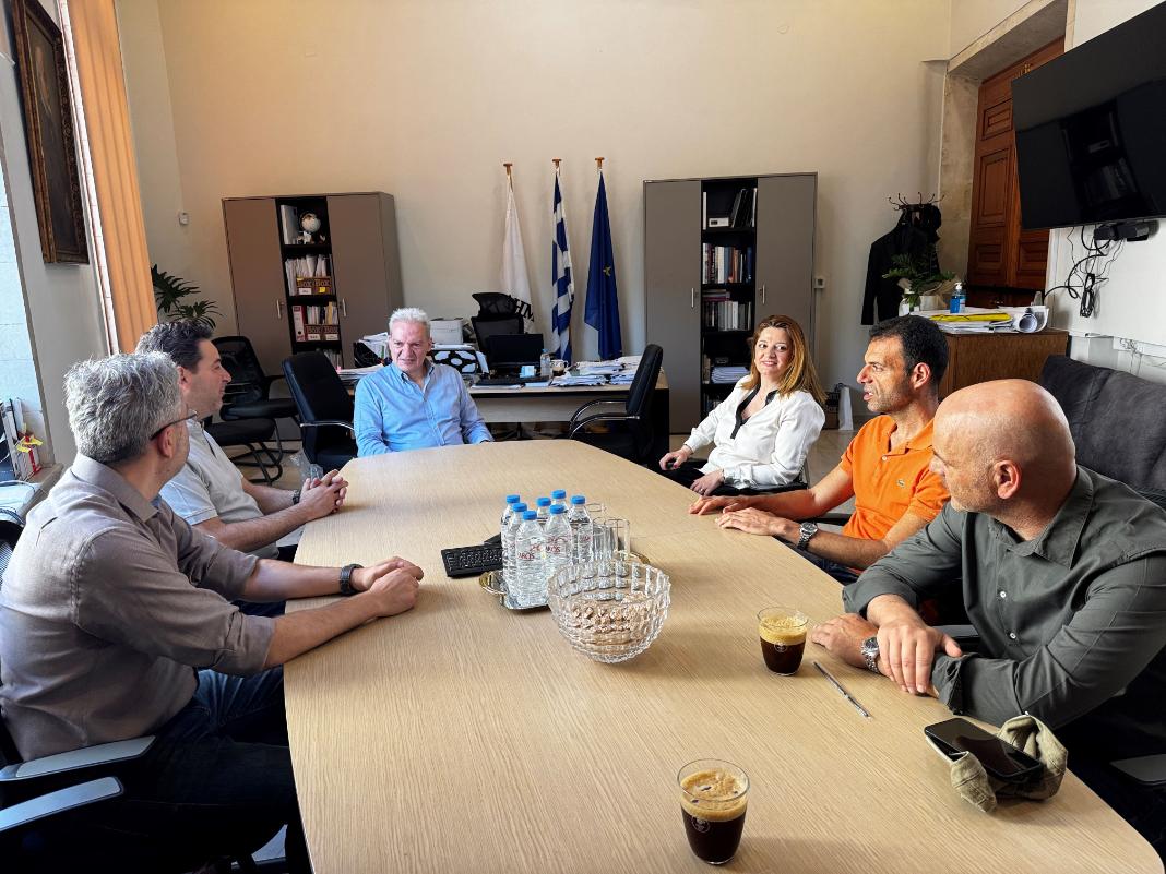 Συνεχίζοντας τις επαφές με εκπροσώπους συλλόγων και φορέων του Ηρακλείου, ο Δήμαρχος Αλέξης Καλοκαιρινός υποδέχθηκε στη Λότζια τα μέλη της Διοίκησης του Συλλόγου Εργαζομένων ΔΟΥ Ανατολικής Κρήτης και του Συνδέσμου Επισιτισμού και Διασκέδασης Νομού Ηρακλείου.