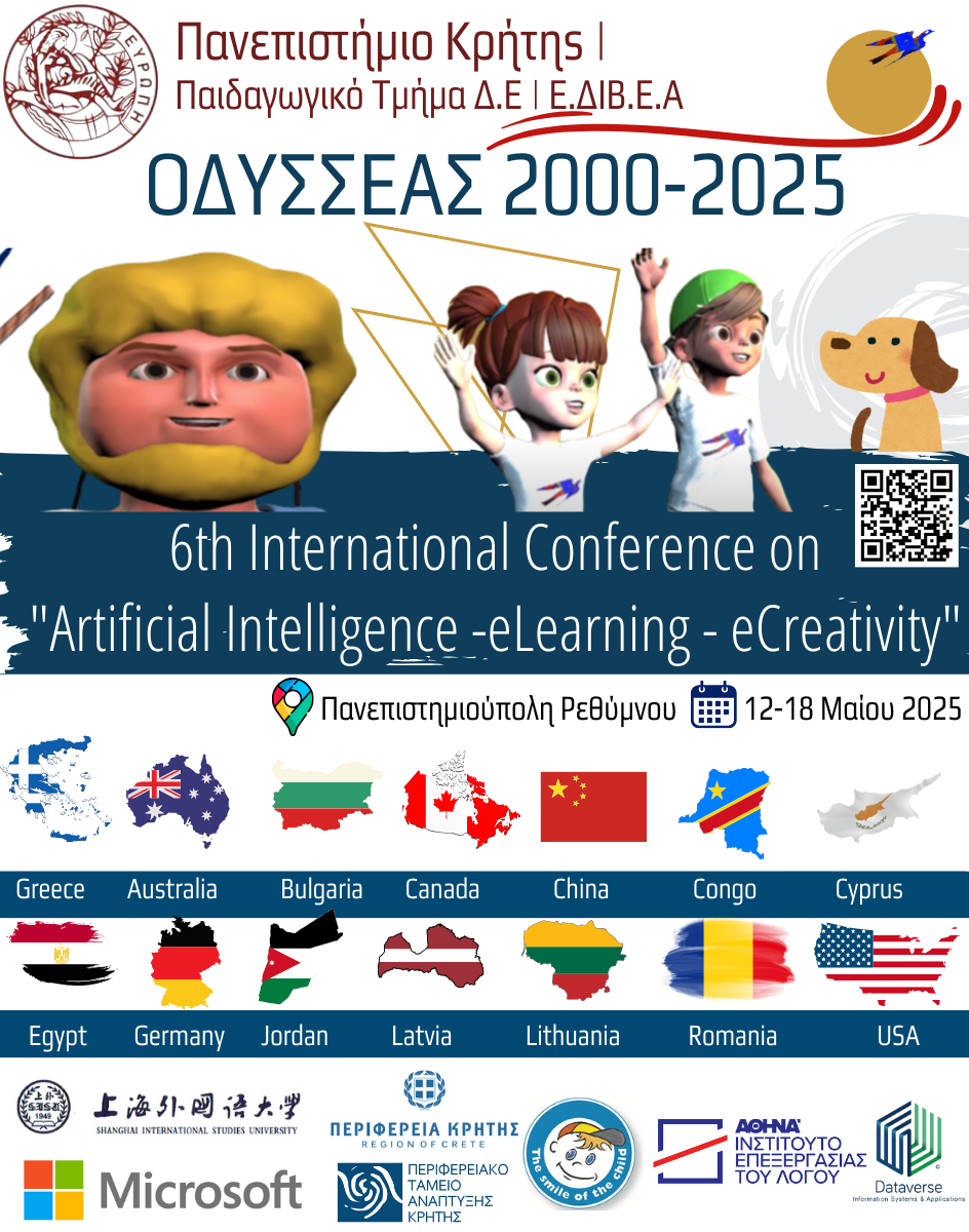 Το Εργαστήριο Δια Βίου και εξ Αποστάσεως Εκπαίδευσης [Ε.ΔΙ.Β.Ε.Α], του Παιδαγωγικού Τμήματος Δ.Ε του Πανεπιστημίου Κρήτης στο πλαίσιο του Προγράμματος Μεταπτυχιακών Σπουδών : «Επιστήμες της Αγωγής – Εξ Αποστάσεως Εκπαίδευση με την Αξιοποίηση Προηγμένων Μαθησιακών Τεχνολογιών (eLearning)» διοργανώνει το 6ο Διεθνές Συνέδριο με θέμα: «Artificial Intelligence – eLearning – eCreativity 2025», 12-18 Μαΐου 2025, στην Πανεπιστημιούπολη Ρεθύμνου.