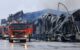 «Έλιωσαν οι λαμαρίνες, φωτιά βγαίνει ακόμη από μία ανοιχτή πόρτα, καπνός και ένα drone που πετά πάνω από τα αποκαΐδια και τις ενεργές εστίες ψάχνει για θύματα», όπως μεταφέρουν δημοσιογράφοι που βρίσκονται στο σημείο.
