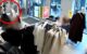 Η γυναίκα εντοπίζει τα ρούχα που θέλει να κλέψει, κοιτάζει γύρω της και κάνει νόημα στον άνδρα, ο οποίος πλησιάζει, ανοίγει τη σακούλα και βάζει μέσα τη λεία.