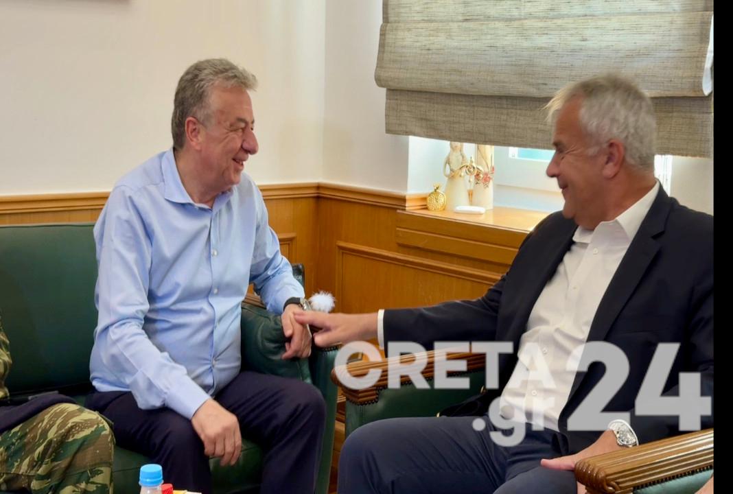 Την Περιφέρεια Κρήτης επισκέφθηκε σήμερα ο Υπουργός Μετανάστευσης και Ασύλου Μάκης Βορίδης και είχε συνάντηση εργασίας με τον Περιφερειάρχη Σταύρο Αρναουτάκη, στο πλαίσιο των πρωτοβουλιών του Υπουργείου για την διαχείριση των μεταναστευτικών ροών στο Ηράκλειο.